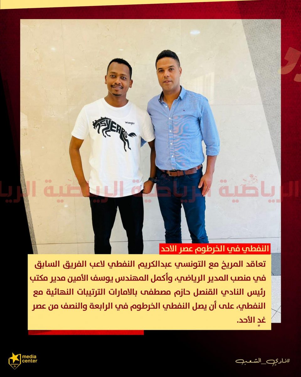غير مصنفكريم النفطي مديرا فنيا المريخ السوداني by root4 يونيو، 20220509 Share0 اعلن المريخ السوداني،اليوم، عبر صفحته الرسمية على الفايسبوك عن تعاقده مع المدرب التونسي عبد الكريم النفطي في خطة مدير رياضي. ويذكر ان المريخ يدربه أيضا التونسي غازي الغرايري