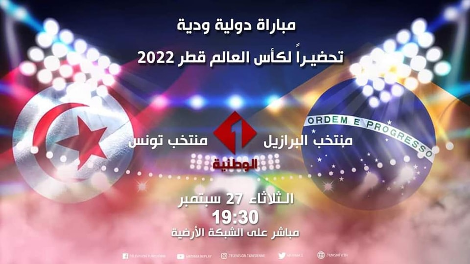 أعلنت التّلفزة التّونسية عبر صفحتها الرّسمية فيسبوك نقلها مباراة تونس ضدّ البرازيل الودّية المرتقبة اليوم.