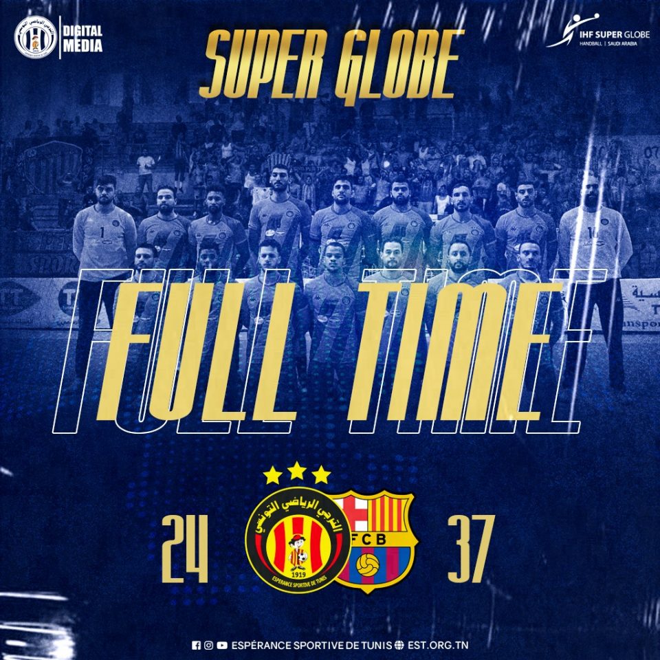 اِنهزم التّرجي الرّياضي التّونسي فرع كرة اليد اليوم أمام برشلونة الإسباني في الجولة الثّانية والأخيرة من دور مجموعات بطولة كأس العالم للأندية، السّوبر غلوب، بنتيجة 37 مقابل 24.
