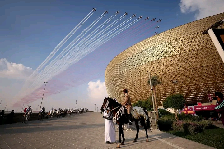 و نظمت قطر منذ صباح اليوم عرضا جوّيا بالطائرات فوق ملعب لوسيل الذي يحتضن نهائي المونديال ، و سينطلق النهائي في الساعة الرابعة مساء بين المنتخب الأرجنتيني و نظيره الفرنسي لحصد النجمة الثالثة.
