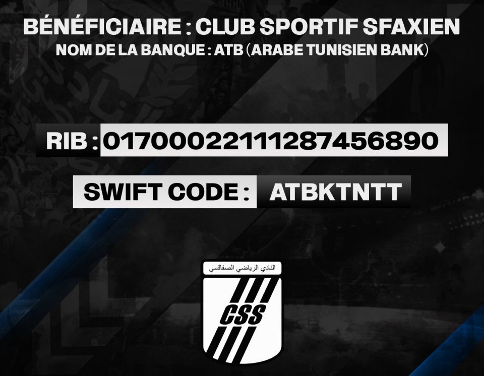 يعلم النادي الرياضي الصفاقسي كافة الداعمين والاحباء داخل تونس وخارجها انها فتحت حسابا بنكيا بالبنك العربي التونسي اطلق عليه اسم “TAKE-OFF”