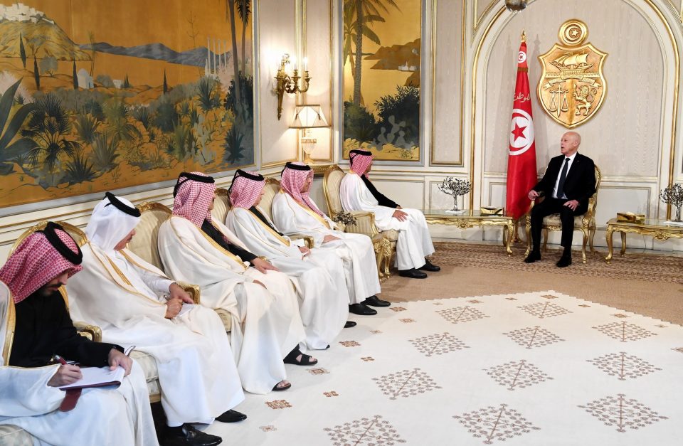 إستقبل صباح اليوم رئيس الجمهورية قيس سعيّد ، الشيخ خالد بن خليفة بن عبد العزيز آل ثاني رئيس مجلس الوزراء وزير الداخلية بدولة قطر الذي ترأس وفدا لتأدية زيارة عمل ببلادنا.