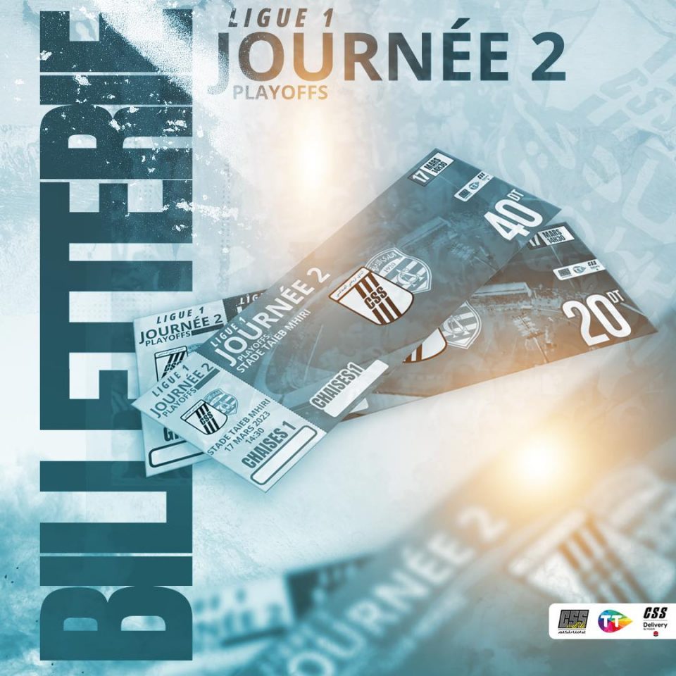 “بمناسبة مباراة الجولة الثانية بلاي أوف من البطولة الوطنية بين النادي الرياضي الصفاقسي والنادي الافريقي ليوم الجمعة 17 مارس 2023 بداية من الساعة 14:30 بملعب الطيب المهيري، يضع النادي الرياضي الصفاقسي على ذمة جماهيره تذاكر خاصة بالمباراة صنفي مدارج (20 دينار) وكراسي (40 دينار).