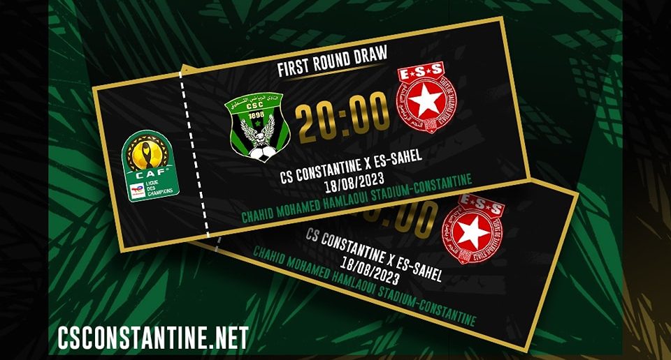 تنطلق اليوم الثلاثاء 15 أوت 2023 عمليّة بيع تذاكر مواجهة نادي قسنطينة الجزائري و النّجم السّاحلي المبرمجة يوم الجمعة 18 أوت 2023 إنطلاقا من الثامنة مساءً ضمن الدّور التمهيدي الأول لدوري أبطال إفريقيا.