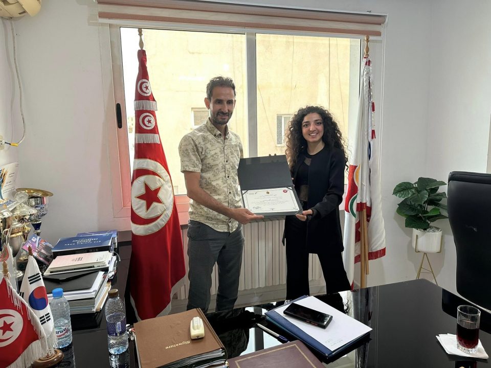 ووقع تكريم البطلة تثمينا لمجهوداتها المبذولة من أجل خدمة التايكواندو و الحصول على رقمها العالمي القياسي الثاني، كما شملت جلسة العمل حرص الجامعة على توفير كل الضروف المناسبة من أجل الحصول على رقم قياسي عالمي جديد و ذلك بتقديم الإحاطة و العناية الطبية و البدنية و اللوجستية ،كما أعربت البطلة سارة الركباني عن سعادتها بالدعم الذي ستوفره لها الجامعة من أجل إنجاح انجازاتها العالمية .