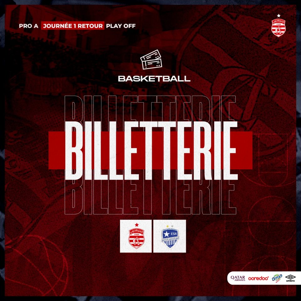 تعلم لجنة التنظيم جماهيرنا العريضة أن عملية بيع التذاكر لمباراة كرة السلة للجولة السادسة (الجولة الأولى إياب) من مرحلة التتويج من بطولة كرة السلة PRO A بين النادي الإفريقي و النجم الرادسي المبرمجة ليوم الإربعاء 03 أفريل 2024 على الساعة 21:30 بالقاعة متعددة الإختصاصات برادس تنطلق يوم