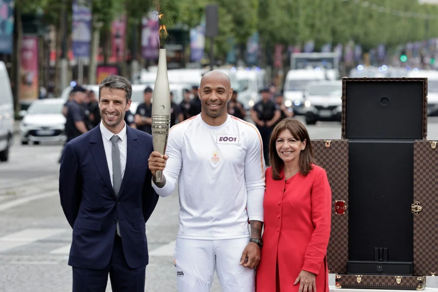 في ختام موكب الاحتفالات بالعيد الوطني الفرنسي ،انطلقت الشعلة الأولمبية وبدأت رحلتها داخل العاصمة الفرنسية باريس ، حيث حمل نجم كرة القدم الفرنسية السابق تييري هنري الشعلة من انطلاق الألعاب