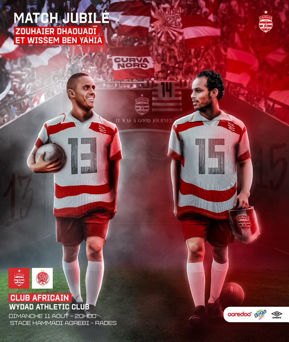 ينظّم النادي الإفريقي مقابلة توديعيّة في كرة القدم على شرف اللاعبين وسام بن يحي و زهير الذوادي و ذلك يوم الأحد 11 أوت 2024 على الساعة السابعة مساء (19:00) بملعب حمادي العقربي برادس.