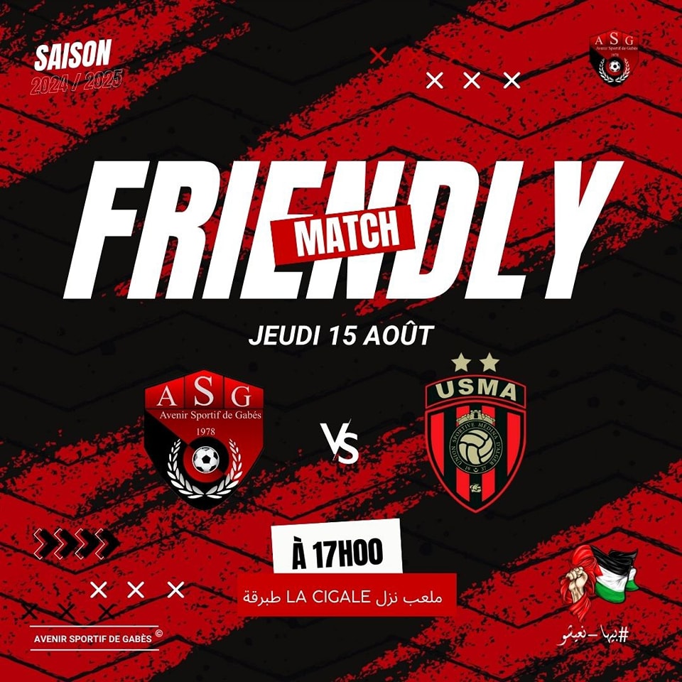 تُقام اليوم الخميس 15 أوت 2024، مباراة وديّة بين المستقبل الرياضي بقابس واتحاد العاصمة الجزائري، الّذي يدرّبه التونسي نبيل معلول.