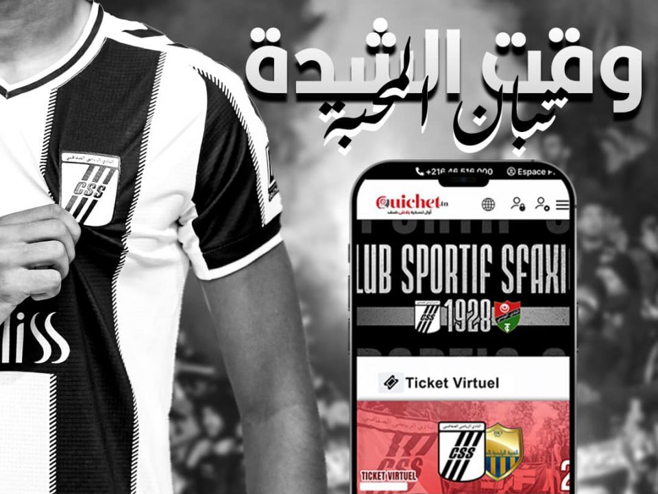 التذاكر متوفرة بمركب النادي و عبر الروابط التالية على موقع Guichet.tn