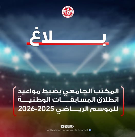 أعلنت الجامعة التونسية لكرة القدم اليوم الإثنين عن المواعيد الرسمية لإنطلاق المسابقات الوطنية لموسم 2025 ـ 2026